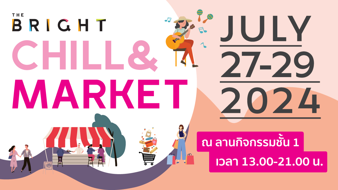“THE BRIGHT CHILL & MARKET” พบกับสินค้านานาชนิดและเพลิดเพลินไปกับเสียงดนตรี วันที่ 27-29 กรกฎาคม 2567 เวลา 13.00-21.00 น. Chill กันได้ทุกวันศุกร์-เสาร์ และวันอาทิตย์ สิ้นเดือน! ณ ลานกิจกรรม ชั้น G เดอะไบรท์ คอมมูนิตี้มอลล์ พระราม 2