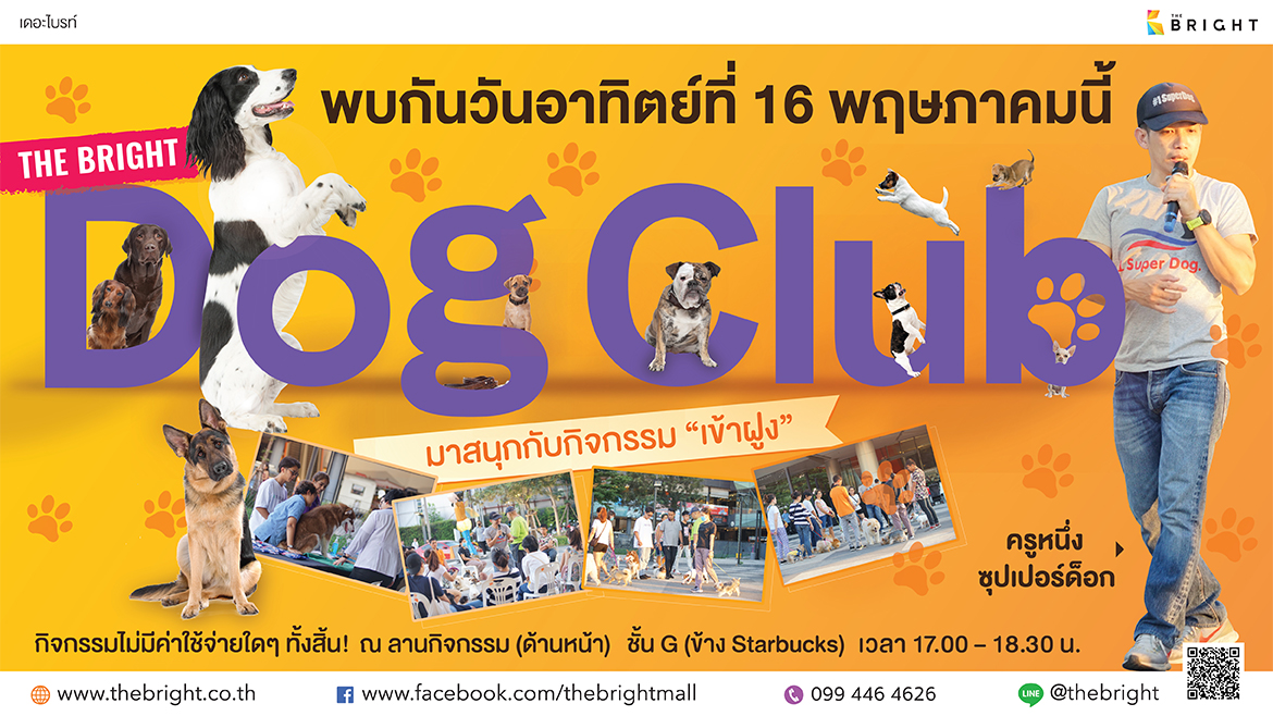 มาสนุกกับกิจกรรม “เข้าฝูง” ฟรี!! ไม่มีค่าใช้จ่ายใดๆ ทั้งสิ้น กลับมาอีกครั้งกับกิจกรรมที่ทุกคนรอคอย ขอเชิญชวนทุกท่านนำน้องหมามาร่วมทำกิจกรรม ปรับพฤติกรรมพื้นฐาน ก่อนพาน้องหมาเที่ยวนอกบ้านพร้อมฝึกความสามารถเบื้องต้น โดย ครูหนึ่ง Super Dog วันที่ 16 พฤษภาคม 2564 เวลา 17.00 – 18.30 น. ที่เดอะไบรท์ พระราม 2 ณ ลานกิจกรรม ชั้น G (ข้าง Starbucks)