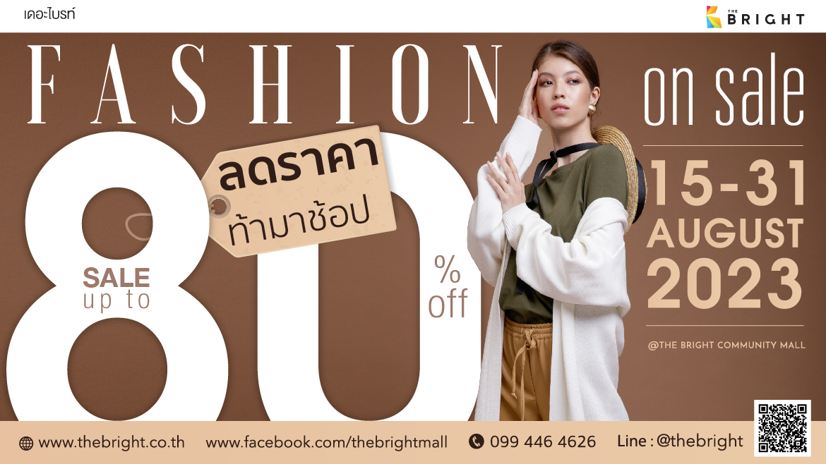 “FASHION on sale” วันที่ 15-31 สิงหาคม 2023 ลดราคา ท้ามาช้อป SALE UP 80% off @THE BRIGHT COMMUNITY MALL