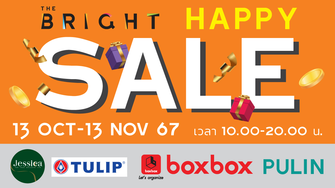 “THE BRIGHT HAPPY SALE”  วันที่ 13 ตุลาคม – 13 พฤศจิกายน 2567  เวลา 10.00 – 20.00 น. พบกับสินค้า Jessica, Tulip, boxbox, Pulin