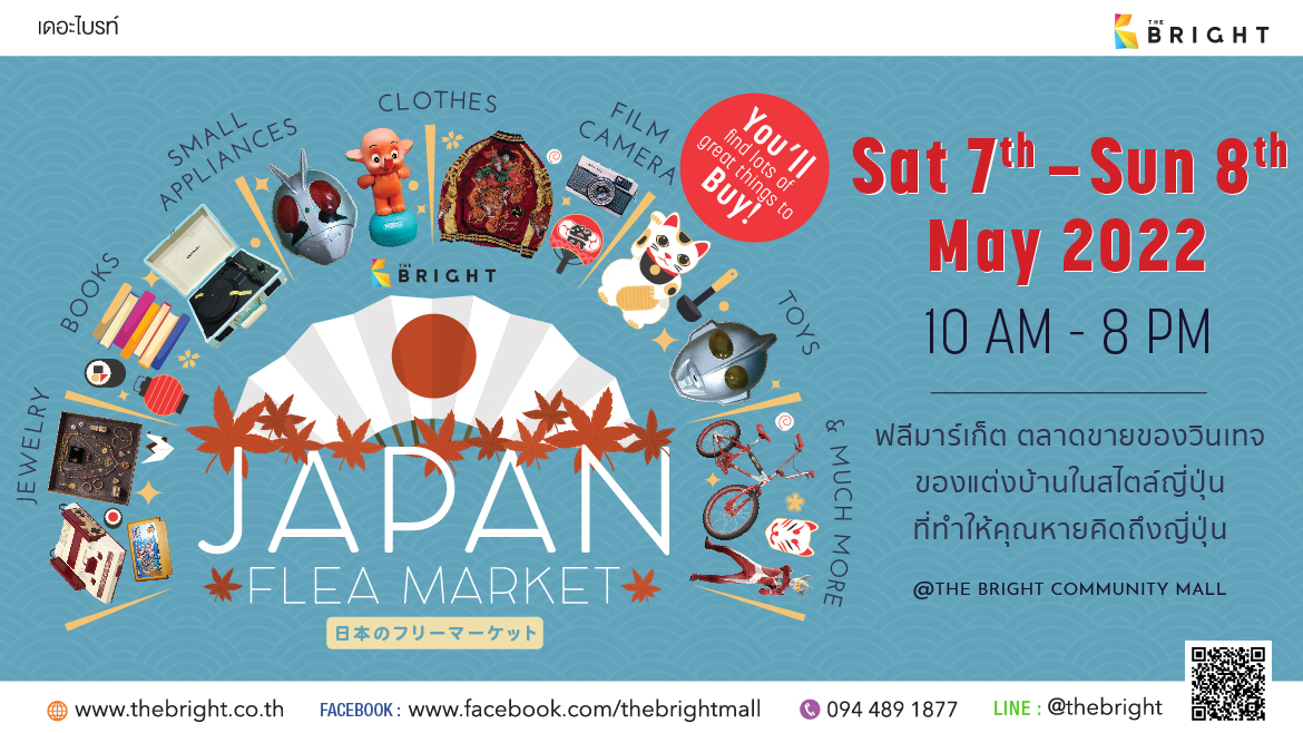 “JAPAN FLEA MARKET” วันที่ 7-8 พฤษภาคม 2022 เวลา 10.00 – 20.00 น. ฟลีมาร์เก็ต ตลาดขายของวินเทจ ของแต่งบ้านในสไตล์ญี่ปุ่นที่ทำให้คุณหายคิดถึงญี่ปุ่น @The Bright Community Mall
