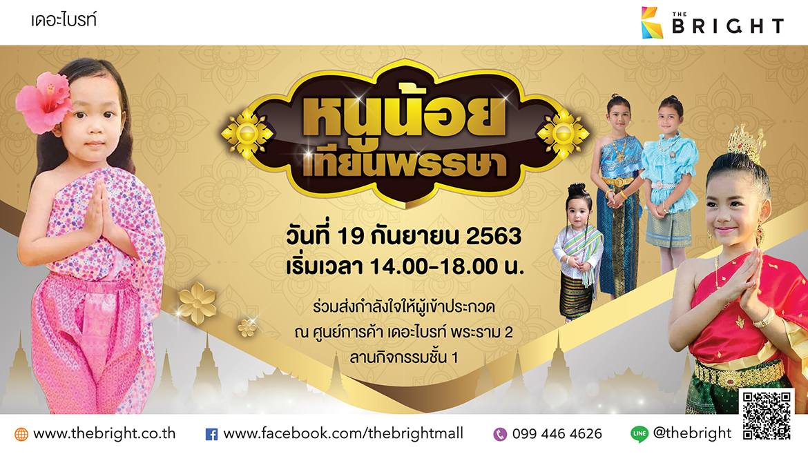 “หนูน้อยเทียนพรรษา” วันที่ 19 กันยายน 2563 เริ่มเวลา 14.00-18.00 น. ร่วมส่งกำลังใจให้ผู้เข้าประกวด ณ ศูนย์การค้า เดอะไบรท์ พระราม 2 ลานกิจกรรม ชั้น 1