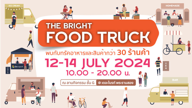 "THE BRIGHT FOOD TRUCK" พบกับทรัคอาหารและสินค้ากว่า 30 ร้านค้า วันที่ 12-14 กรกฎาคม 2024 เวลา 10.00 - 20.00 น. ณ ลานกิจกรรม ชั้น G @เดอะไบรท์ พระรามสอง